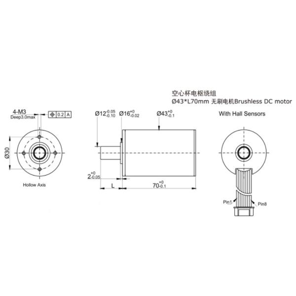 43mm*70mm Coreless Dc Motor Manufacturer For High Level Smart Device with Long Shaft and hall sensor